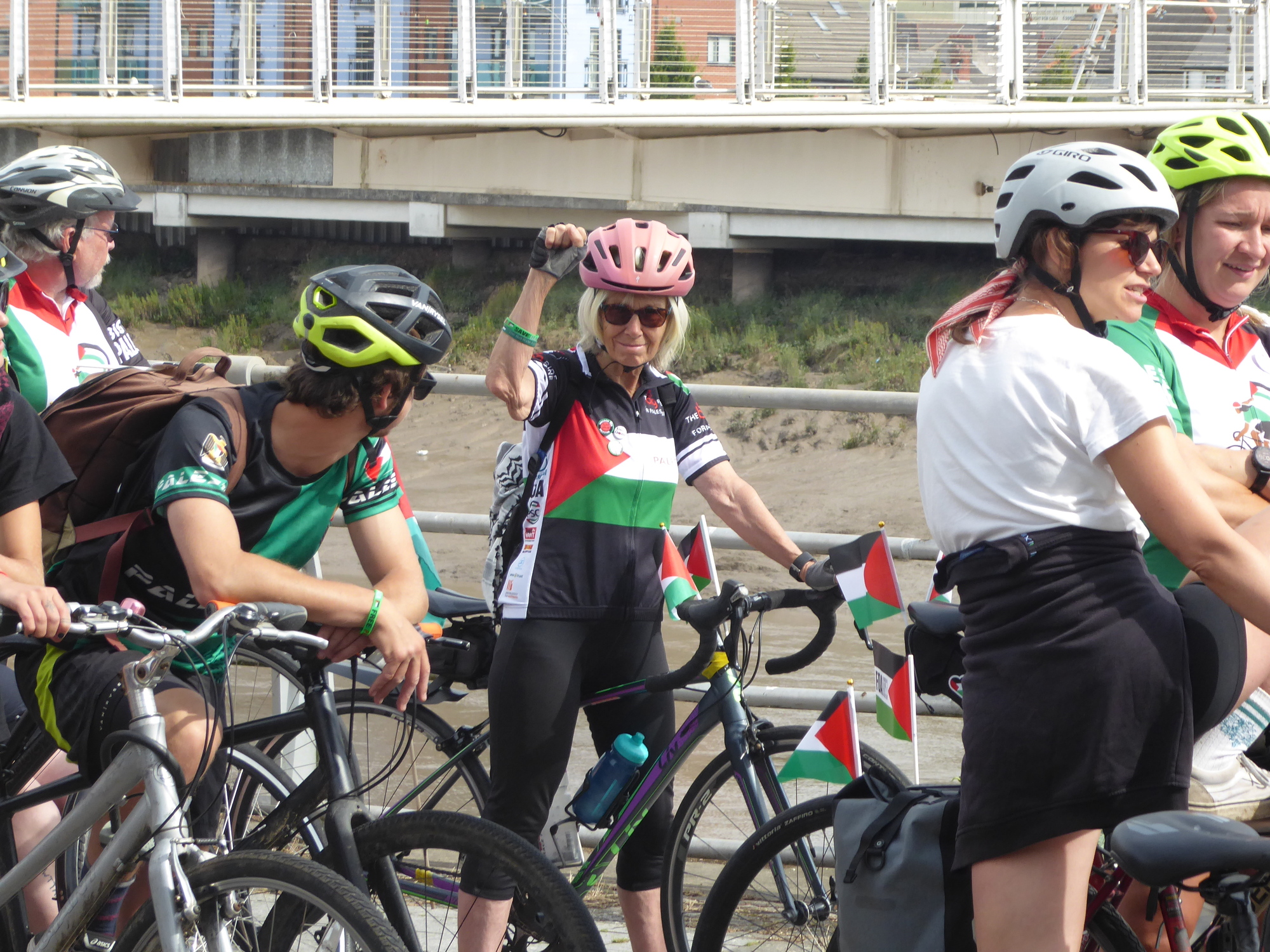 We came into Bristol through leafy suburubs (Westbury on Trim) which was a shame as no street interaction. We 'finished' on Clfton Downs instead of College Green owing to presence of RWing extremist demoin the centre - the girl from Sheffield who was a key organizer last year summed up very well. Then a slightly smaller peloton (although still well over 100) rode down Whiteladies but not Park Street - round to the swing bridge at the mouth of the harbour and then along Cumberlan Rd and Commercial Rd to Temple Meads and Klub Loco for the meal and reception.